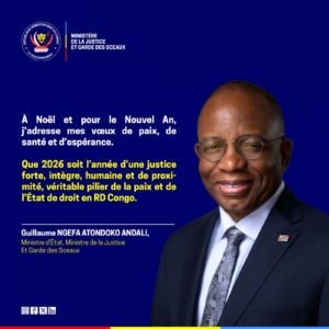 « Que 2026 soit une année d’une Justice forte, intègre, humaine et de proximité, véritable pilier de la paix et de l’État de droit en RDC», a écrit M. Ngefa dans un message parvenu à Lejour.net